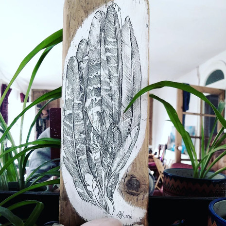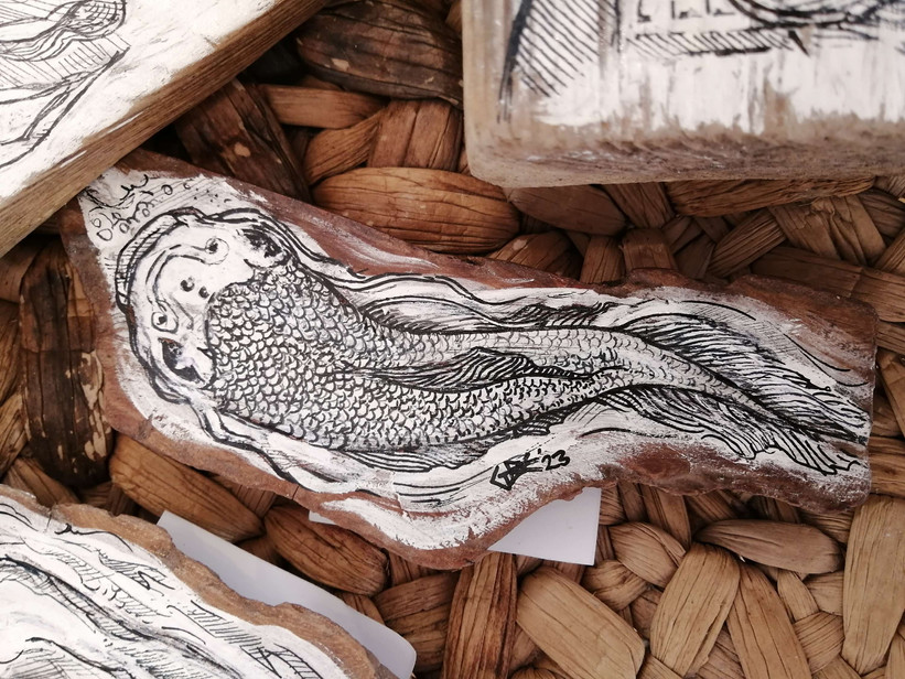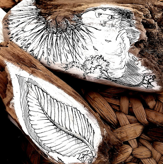 "Freehand artwork produced on locally sourced and hand-finished driftwood from the Severn Estuary, each one completely unique."